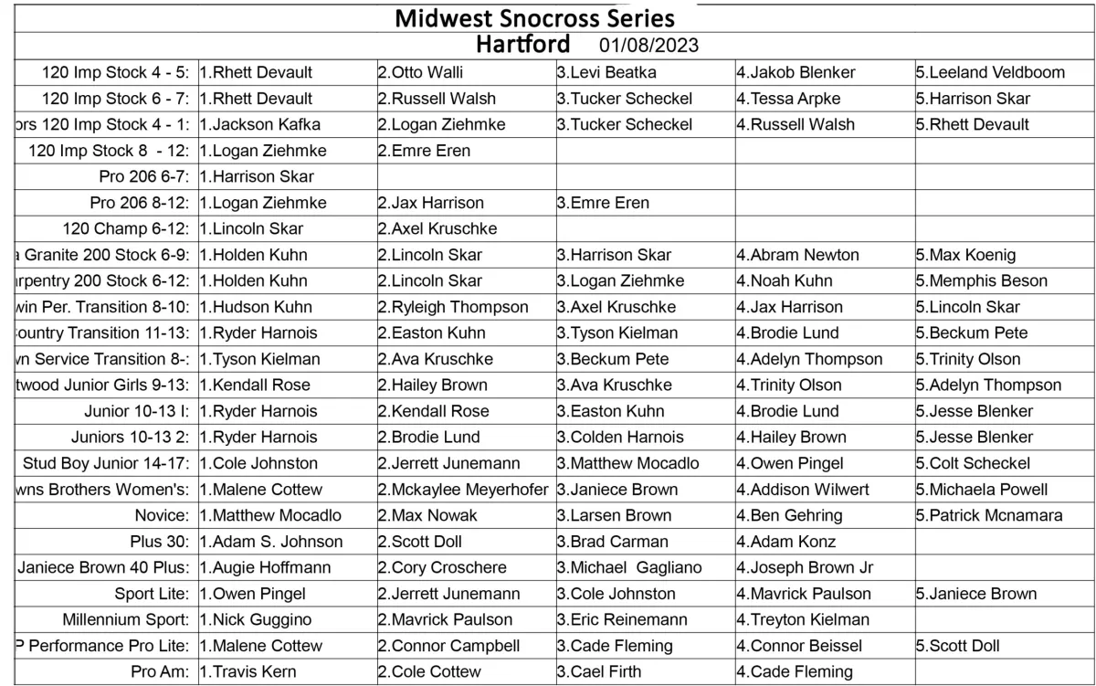 The Midwest Snocross Series will return to the RK Compound in Hartford, WI February 4-5 with more exciting snocross racing! Be sure to follow everyone involved (racers, teams, venue and series) on Facebook and Instagram to stay up to date with all of the info. All event info can be found on the Midwest Snocross Series website www.midwestsnocross.com